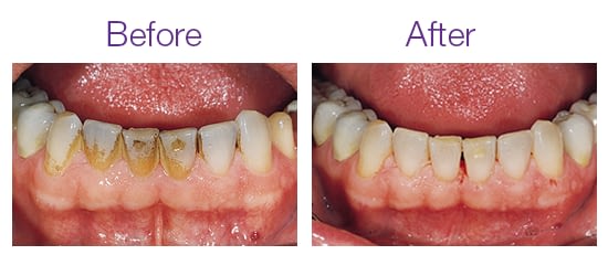 Then we gently hand scale removing any small pieces they have not removed. Hand scaling allows the dentist to carefully feel any small pieces of build-up missed during the ultrasonic treatments.